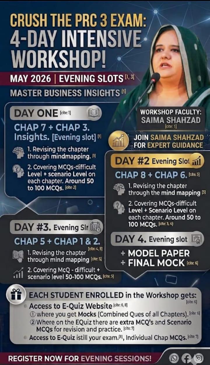 Here at Focus Point, not only she teaches CA - PRC 1 Business writing and Comprehension Skills and PRC 5 Business Studies recorded and online classes, but also conducts all Css classes exclusively from this platform.